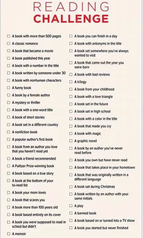 So, I came across the above checklist on Facebook towards the end of ’14. I had been slacking in my reading as of late so I decided to try and achieve it. This was helped along by the creation of a group for the challenge, also on Facebook.